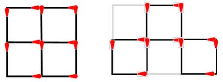 cette figure à cinq carrés, en déplaçant trois allumettes.
