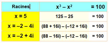 Problème et solution Le tableau montre l'équation du troisième degré à