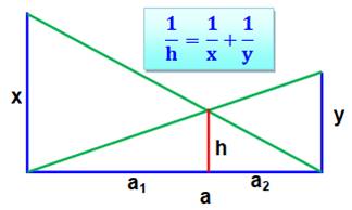 Échelle double (Cross ladder theorem) Deux parois verticales, ou non, de hauteur x et
