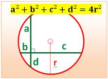 externe, alors la relation suivante est vérifiée: a² + b² = c² + d² Démonstration avec le théorème de Pythagore a² + b² = u² + x² + v² + y² c² + d² = x² + v² + u² + y² Il y a bien égalité. |