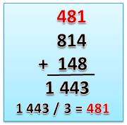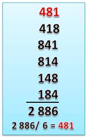 cad. somme des permutations divisée par la quantité de permutations. Les repdigits comme 111, 222, … sont