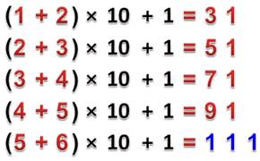 imaginer l'opération (1 + 2) × 10 + 1 telle que présentée dans le tableau C. |