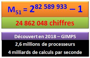 les nombres de Mersenne qui battent actuellement les records. Les grands nombres premiers sont utilisés en