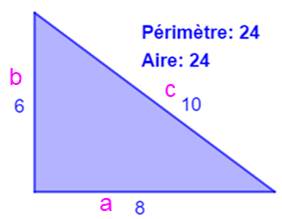 les trois inconnues a, b et c. Résultat pour l'hypoténuse c