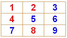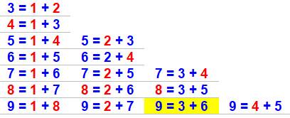 9 = 3 + 6 est bleu. |