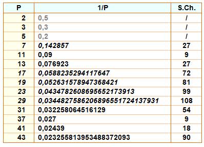 Inverse des nombres premiers La partie répétitive, la période,
