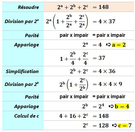 1127. Résoudre 2a + 2b + 2c = 148 |