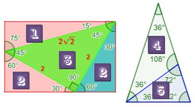 triangles élémentaires. Par exemple deux triangles (15-75-90) réunis par