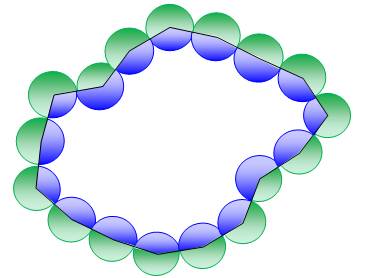 la zone bleue est toujours équivalente à l'aire de deux petites perles quelle que soit la quantité de perles. Cette propriété est valable que le polygone soit