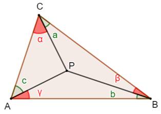 particulière. Triangle et céviennes Un triangle quelconque et un point P interne. Les trois céviennes AP, BP et CP. Propriété
