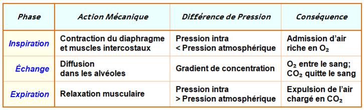 volume de la cage thoracique, une diminution de la pression dans les poumons et une entrée de l’air de l’extérieur