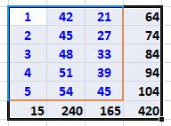 Raccourci somme sur Excel Soit le tableau de nombres indiqué.