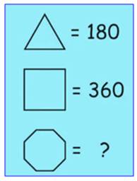 Énigme On demande de préciser la troisième valeur. Solution Il s'agit évidemment de polygones réguliers à 3,