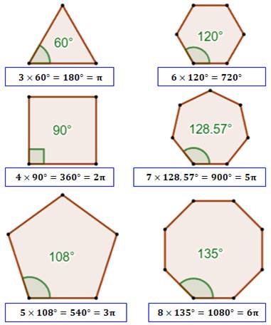 internes aux polygones. Ainsi pour l'octogone, on aura 1080°. |