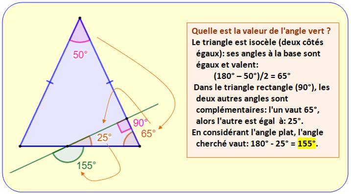 penser que ces nombres représentent l'aire des formes proposées. Il y a plus simple ! C'est la somme des angles