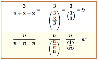 Cependant, on l'interprète comme 3 divisé par le bloc: 3/3/3. Dans ce bloc, les opérations s'effectuent de la
