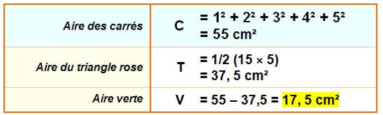Construction Cinq carrés adjacents de côtés 1, 2, 3, 4 et 5