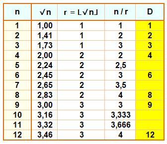 partie entière r. Le nombre n est divisé par cette partie entière. Si le résultat de n / r est un entier, alors
