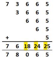 procédant, pour chacun, à un décalage d'un cran vers la droite La somme des colonnes, en tenant compte des