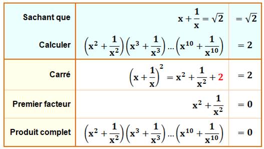 le produit en cherchant à l'exprimer en fonction des x + 1/x. Une astuce consiste à se demander ce que devient