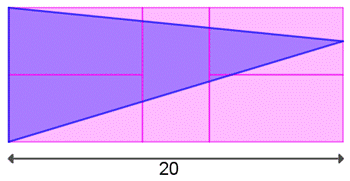 petit rectangle vaut deux fois sa longueur (L). Alors 20 cm représente 5L et donc L = 4 cm Aire du triangle bleu L’aire est