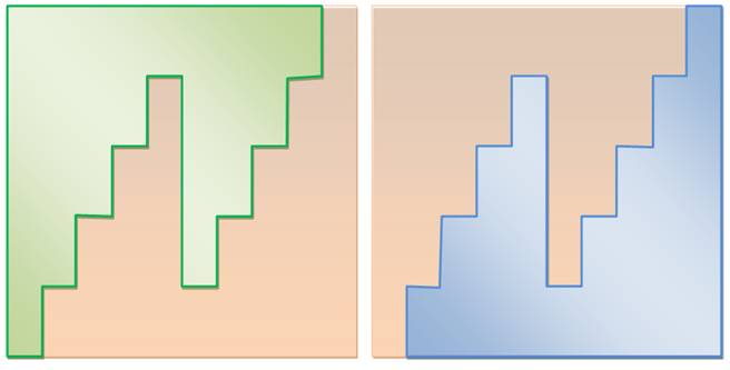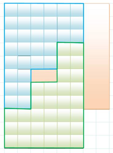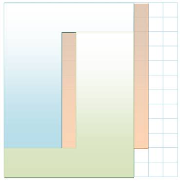du carré en deux pièces, l'une bleu et l'autre verte.