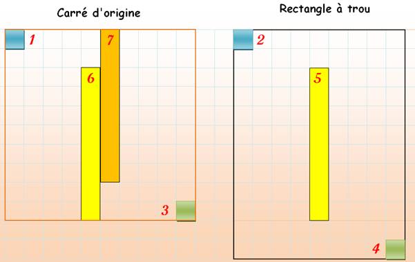 Carrés et rectangles à trou Le problème du tapissier: comment utiliser une moquette