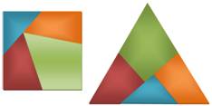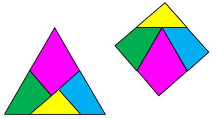 (rouges) pour constituer un puzzle d'une seule pièce. On passe alors du triangle au carré et