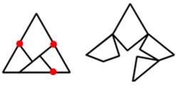 formant le triangle et le carré sont réduites à un graphe qui lie leurs côtés