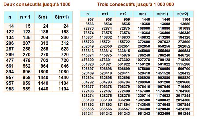 nombres 122 et 123 ont 186 et 168 pour somme des diviseurs. Ce sont les mêmes