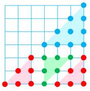 Quantité de points disposés en forme de triangle équilatéral. Tn = {1, 3, 6, 10, 15, 21 …} Un nombre triangulaire Tn