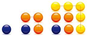S1 = 1x1 S2 = 2x2 S3 = 3x3 Observez les boules ajoutées à chaque étape: S1