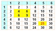 relations indiquées. Illustration avec la Table de multiplication