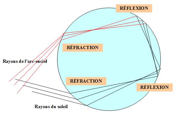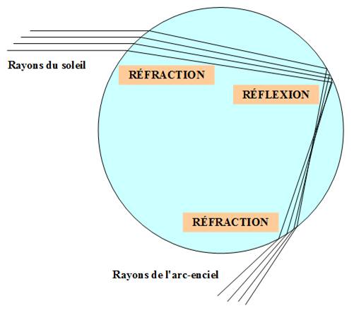 de la lumière du soleil par réfraction et réflexion sur les gouttelettes d'eau de pluie. Son