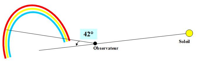 pourquoi l'arc-en-ciel est bien visible pour cet angle. Pour