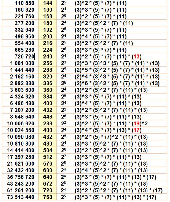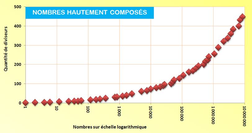 NOMBRES HAUTEMENT COMPOSÉS et quantité de diviseurs Un nombre est hautement composé s'il a plus de diviseurs que pour tous ceux
