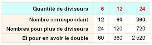 nombre 5 040 a 60 diviseurs qui a 12 diviseurs qui a ….