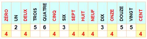 zéro comporte 4 lettres; en colonne 100, cent s'écrit avec 4