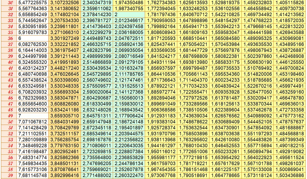 Liste de nombres irrationnels / Tables de racines carrés à décimales proches
