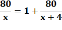 = x (x + 4) 80x + 320 – 80x = x² + 4x 320 = x² + 4x x² + 4x – 320 = 0 |