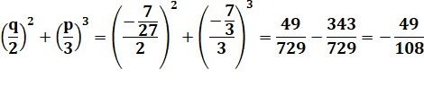 D = 4p3 +27q2 D = 4 (-7/3)3 + 27 (-7/27)2 D -