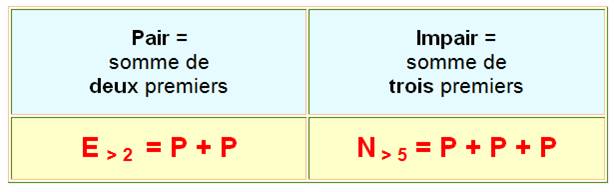 conjecture de Goldbach concernant la partition des entiers en nombres