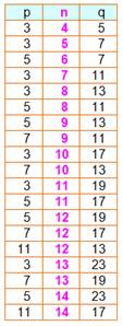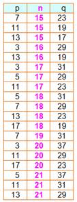un nombre pair somme de deux premiers: 2n = p + q. p