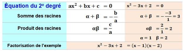 Formulations équivalentes x² + bx + c = 0 x² – Sx + P = 0 x² – (α+β) + αβ = 0 (x – α) (x – β) = 0 Coefficient de tête |