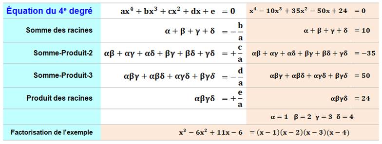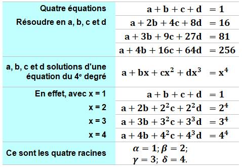 Sommaire de cette page >>> Cas du deuxième degré >>> Cas du troisième degré >>> Cas du quatrième degré >>> Cas général >>> Énigme – Exemple d'application |