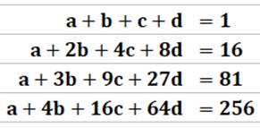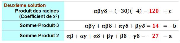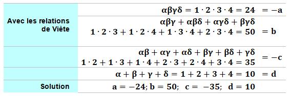 coefficients successifs les puissances croissantes du coefficient de b. Les quatre inconnues a, b, c et d peuvent être