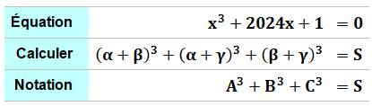 du troisième degré. Calculer la somme S des cubes des sommes des