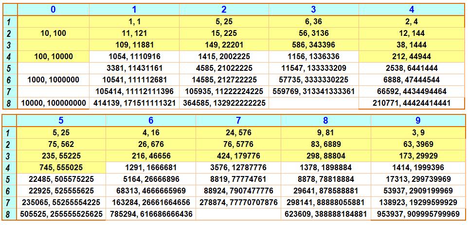 jusqu'à une puissance de 10. Il existe seulement 610 carrés dont tous
