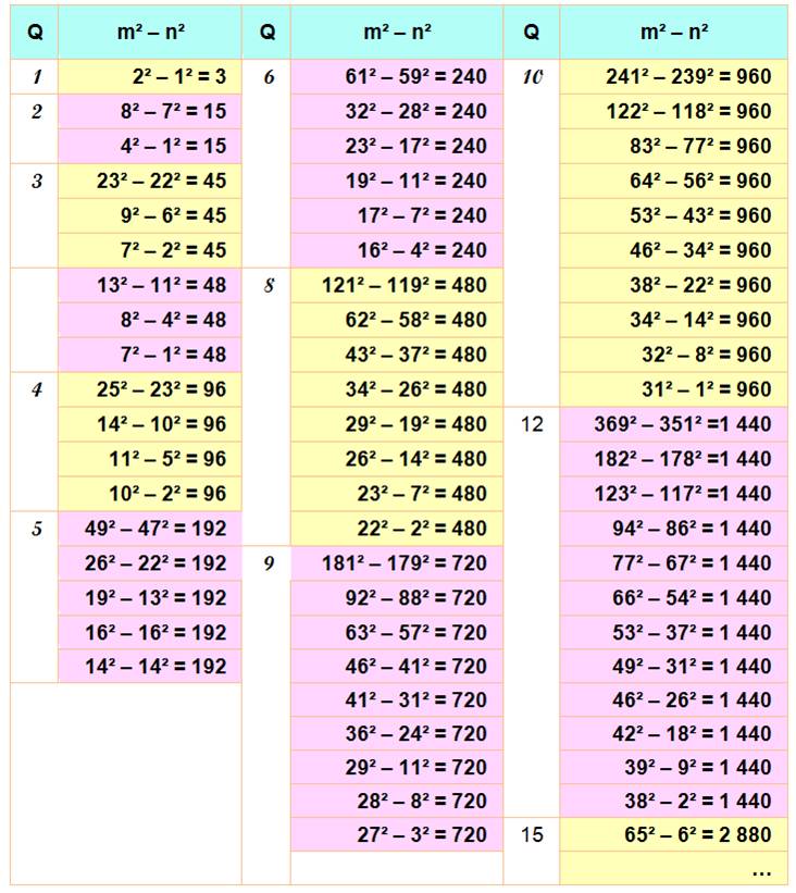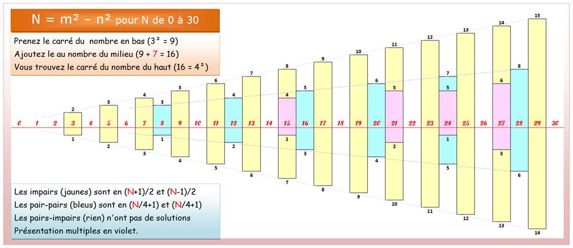 Illustration: structure des différences de carrés donnant les nombres