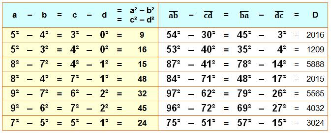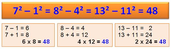 8² – 4² = 7² – 1² = 64 – 16 = 49 – 1 = 48 84² – 71² = 48² – 17² = 7 056 –